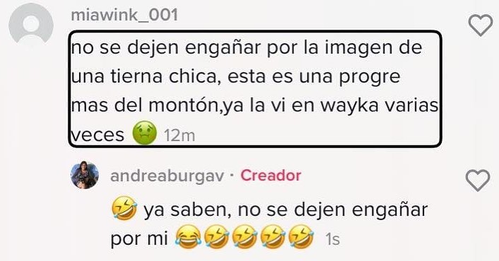 Pareciera que Andrea tiene un chaleco antibalas porque su respuesta frente a quienes la atacan o cuestionan es la ironía. Las redes sociales son su canal de comunicación. Allí hace público los comentarios ofensivos, los cuales finalmente pierden su carga negativa para convertirse en chistes para ella y sus seguidores, un público que viene aumentando casi semanalmente.