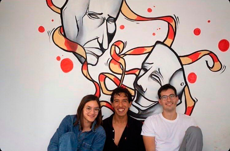 Aníbal Lozano junto a Alex Fischman y Andrea Mato, asistenta de arte de Alienación. Foto: Archivo Personal.