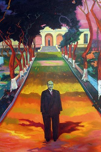 Lima es la gran escenografía donde transcurren sus pinturas. Es el telón de fondo donde ubica a sus personajes y construye escenas. Polanco ha pintado sus calles, sus edificios, sus cines, sus bares, sus cerros y sus barrios. El color de Polanco le ha insuflado vida a escenarios tristes, grises e inertes de la ciudad. La vitalidad en la pintura de Polanco contrasta con la opacidad y la grisura de los lugares que lo inspiraron. Eso se puede ver, por ejemplo, en un cuadro donde Polanco colocó a Martín Adán en el ingreso del hospital Larco Herrera basado en el recuerdo de cuando lo vio por única vez. Era 1979. Por esos días, Polanco solía dibujar entre los enormes pabellones de ese manicomio en decadencia. El ingreso estaba prohibido. No recuerda bien cómo entraba. Un día vio una limosina en la puerta. Había mucha tierra. Fue caminando hacia el carro y vio a Martín Adán conversando vestido con una pijama a rayas en el asiento trasero con el librero Juan Mejía Baca.