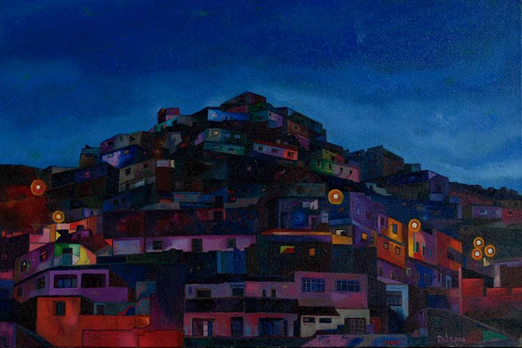 Y es que a Polanco le interesa pintar la marginalidad de la ciudad, los personajes olvidados por la élite. “Esa es la Lima en la cual yo me muevo”, expresa. Sus cuadros son destellos de cómo siente y mira a la ciudad. Y ha intentado retratar el alma de una época. Hoy hablar de Lima, ya no es solo referirse al centro. Se habla de los conos habitados por la segunda y tercera generación de migrantes que llegaron a la capital y construyeron sus viviendas en los cerros.