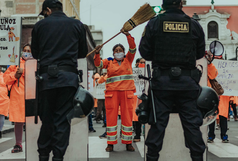 El 29 de junio las trabajadoras de limpieza realizaron una vigilia pacífica a las afueras de la Municipalidad de Lima. Las fuerzas policiales las reprimieron con bombas lacrimógenas y rochabuses. Muchas de ellas manifestaron su rechazo a las acciones de las autoridades.