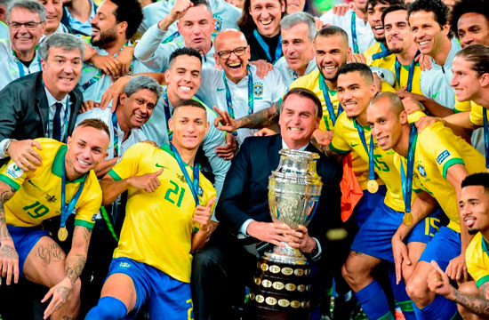 Bolsonaro junto con la selección brasileña celebrando el obtención de la Copa América 2019. Foto: CNN en Español