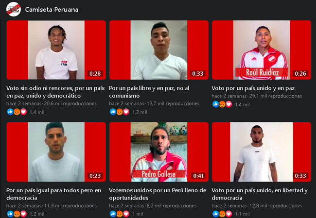 Varios jugadores de la selección participaron en la campaña que favorece subliminalmente a la candidata de Fuerza Popular, Keiko Fujimori. Foto: Captura de pantalla Facebook Camiseta Peruana.