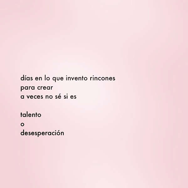 Sus referentes tanto en la pintura como en la escritura son de lo más diversos. En la pintura, desde artistas como Francis Bacon, Fernando de Szyszlo o José Tola, hasta objetos y situaciones cotidianas, como la televisión, la calle y, algo que llamó mi atención, las redes sociales. “Yo guardo a veces historias de quince segundos de Instagram que me dejan atónito y que sé que en algún momento voy a utilizar”, acota. En la literatura sus pilares son Borges y Cortázar, pero también disfruta mucho de la poesía peruana de los sesenta y setenta. Menciona a Eduardo Chirinos, Giovanna Pollarolo, Antonio Cisneros, Luis Hernández, José Watanabe y Martín Adán.