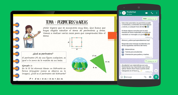 Se llama ProfeChat y ofrece contenidos de matemáticas, tutoría para estudiantes y orientación para padres de familia. El chat automático ha sido desarrollado por la asociación civil Conectar para Actuar en colaboración con docentes de zonas rurales de Piura y Cajamarca.