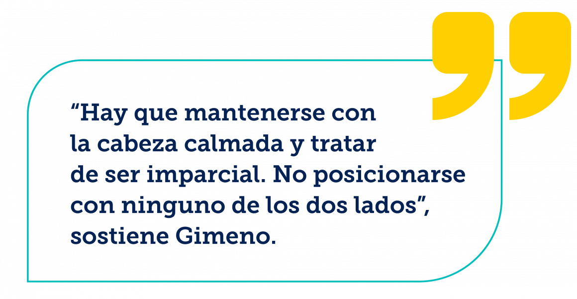 En un contexto como este, la responsabilidad del periodista y, en especial, del corresponsal es prioritaria: “Hay que mantenerse con la cabeza calmada y tratar de ser imparcial. En el caso de las elecciones, no posicionarse con ninguno de los dos lados”, propone Gimeno.