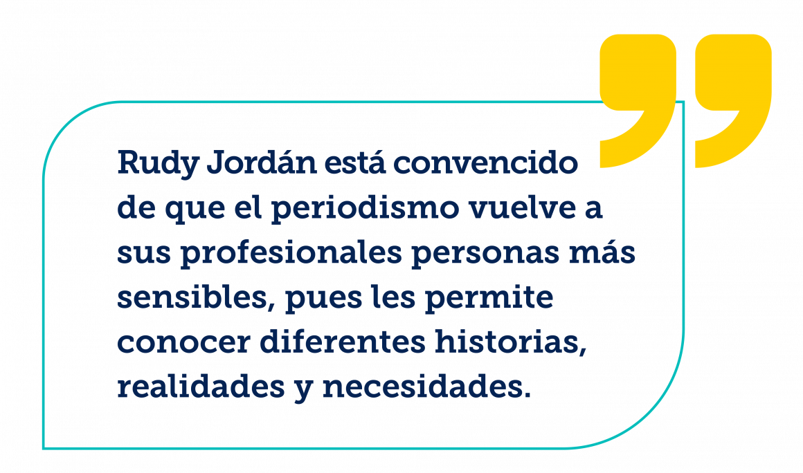 Aunque al inicio tenía nociones vagas sobre su futura profesión, Rudy Jordán quería escribir y desentrañar la realidad que lo rodeaba. Por ello decidió estudiar Periodismo en la PUCP.