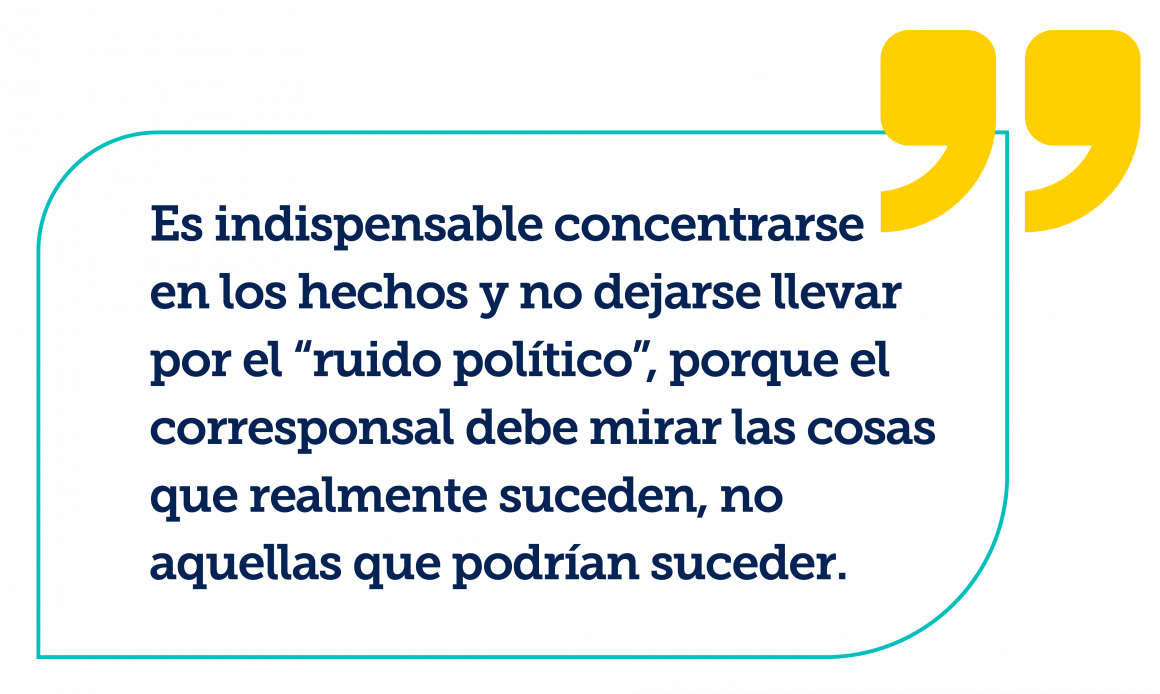 Es indispensable concentrarse en los hechos y no dejarse llevar por el “ruido político”, porque el corresponsal debe mirar las cosas que realmente suceden, no aquellas que podrían suceder.