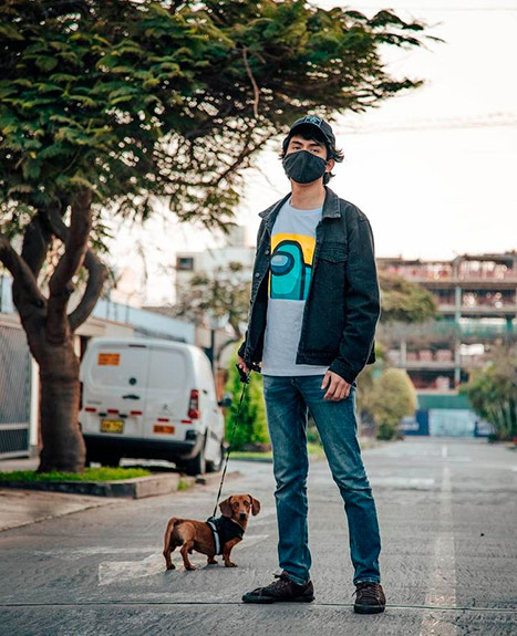Elías junto a su perro salchicha ‘Platón’. Foto: Archivo Personal.