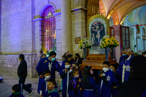 El 18 y 31 de octubre, la sagrada imagen del Cristo Morado recorrió las calles del Valle del Mantaro sobre un camión lleno de flores y decoraciones moradas al que llamaron Nazareno Móvil. “El año pasado hubo muchas muertes, incluso dentro de la Hermandad. Eso nos ha motivado para que el Señor pueda salir. Queríamos dar un poco de ánimo después de un tiempo muy difícil”, menciona Dustin Calderón, párroco de la catedral El Sagrario.
