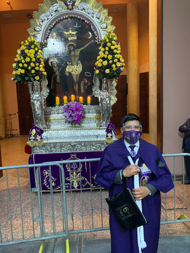 Alexis, de 18 años y perteneciente a la quinta cuadrilla, levantó un altar en la sala de su casa, y las transmisiones de las actividades litúrgicas de la Hermandad congregaron a su familia: todos disfrutaban verlas, pues recordaban al Señor. Manuel también encontró maneras de acercarse más al Cristo Morado. Junto a amigos de la Hermandad, coordinó entregar estampitas y rosarios a personas de los hospitales que se encontraban en la ruta del Señor de los Milagros: el Arzobispo Loayza y el Bartolomé Herrera.
