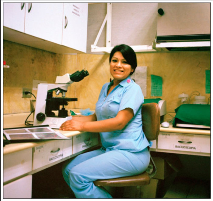 Erika en el laboratorio clínico del Hospital de Ventanilla, donde trabaja actualmente. FOTO: Archivo personal.