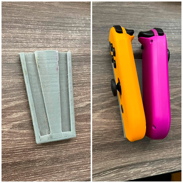 Hasta el 2017 solo jugaba por computadora con el mouse que te mencioné. Aún no jugaba en consola porque estas tienen mandos propios que requieren de ambas manos. A mediados de ese año, vi que en YouTube un creador de contenido subió un video en donde mostraba un adaptador impreso en 3D que él diseñó. Este adaptador permitía sujetar los dos controles del Nintendo Switch con solo una mano. Cuando lo vi me sorprendió y me pregunté si también se podía utilizar con la mano derecha porque el aparato estaba diseñado para ser usado con la izquierda. Unos meses después este creador de contenido subió un video y especificó que había creado un adaptador para ser utilizado con la mano derecha. No esperé más y le dije a mi papá para mandar a imprimir el modelo.