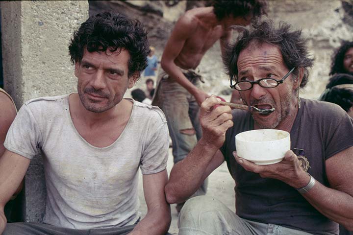 Solo durante la secuencia del Día del Preso le concedieron una excepción. Él y Pochi Marambio, el encargado de musicalizar la película, se vistieron con harapos y comenzaron a tocar bateas y botellas de vidrio. Era la primera vez que Marambio asumía esta función para cine y quiso estar presente en el rodaje. Otro que también estuvo fue Guillermo Portugal. Pero su presencia ya no era tan mágica como cinco años atrás. El equipo ya estaba harto de él. Comenzaba a pelear con el equipo técnico y con los extras y por ello lo tuvieron que sacar de la isla.