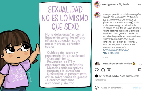 Sin embargo, así como Alesia ha encontrado un público abiertamente interesado en la ESI, también ha tenido que enfrentarse a un sector de la sociedad que manifiesta rechazo, a veces acompañado de violencia, ante la divulgación de estos temas. “Ha sucedido que estas personas llegan por hordas y en grupos súper organizados. Ellos escogen una publicación, la comentan, la atacan y hasta reportan la página para poder bajársela. Aparte de ello, también hay gente, hombres sobre todo, que se toma el esfuerzo de escribirme al inbox o al correo para insultarme o amenazarme”, revela.