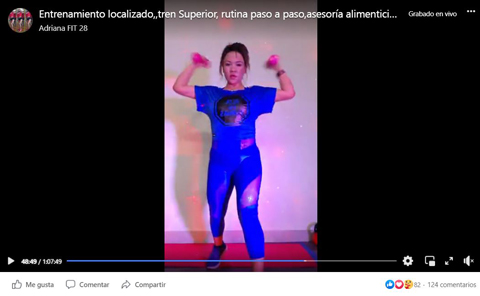 Ante la imposibilidad de realizar actividades presenciales, Adriana empezó a idear nuevas maneras de realizar clases de ejercicio a distancia. “Las chicas me llamaban y me decían que estaban desesperadas por entrenar. Así que me preparé y desocupé mi sala para iniciar con las transmisiones en vivo y encontrarme con las chicas vía pantalla”, menciona la entrenadora. De esa forma, comenzó a dictar clases privadas a través de Zoom y en Facebook Live.