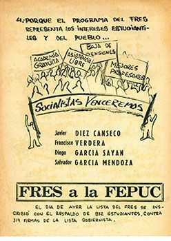Lo único contundente fue la presencia de unos profesores holandeses encargados de enseñarnos unas ciencias sociales, según los entendidos, científicas, bien inclinadas a los números y a los gráficos, a las matemáticas, las estadísticas y la economía. Pero en esas aulas prefabricadas se gestó el primer movimiento de izquierda llamado el FRES (Frente Revolucionario de Estudiantes Socialistas) que tuvo, entre sus líderes más visibles, a Javier Diez Canseco y Manuel Piqueras. A ellos se plegaron, desde Derecho, Diego García Sayán y, desde Literatura, Mirko Lauer.