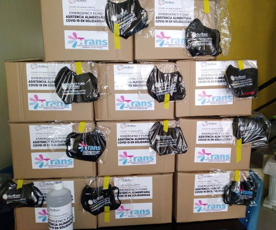 La iniciativa Bono trans consistió en la elaboración de bolsas de alimentos no perecibles y kits de bioseguridad. Estos fueron repartidos entre las mujeres trans de todo el territorio peruano. En Lima, el servicio incluyó un chequeo médico general (pesaje, tallaje y hemograma completo).