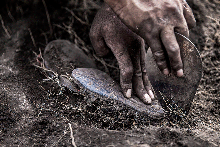 Aquí el EFE que tiene la misión exhumar en los próximos tres años, alrededor de 300 fosas y revelar los secretos de las ejecuciones antes de entregar los cuerpos a los familiares de las víctimas. Ese mes, durante 20 días, el EFE desenterró 19 fosas, donde se hallaron 56 víctimas: 26 menores, 18 mujeres, 6 hombres y 6 adultos de sexo indeterminado. En su mayoría, se encontraron cuerpos de mujeres junto a sus niños ajusticiados por balas de fusil de guerra y degolladas con machetes. Entre el año 2005 y junio de 2013 fueron exhumados en la zona 166 cuerpos. FOTO: Miguel Mejía Castro.