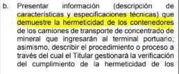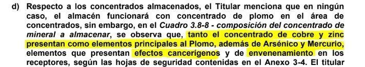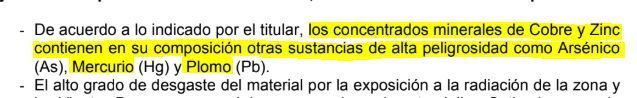La situación se agrava aún más al observar que, hasta el momento, la empresa no ha podido demostrar que los contenedores de los camiones y almacenes donde se pretende guardar el concentrado de minerales serán totalmente herméticos.