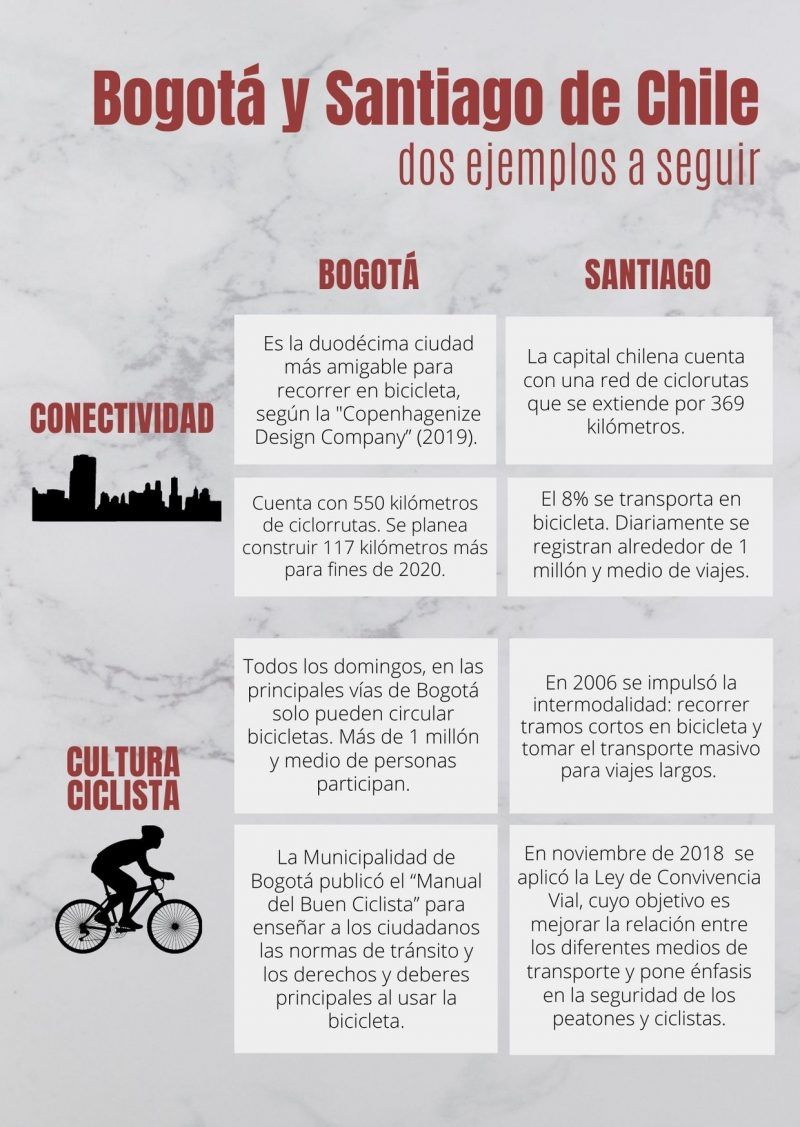 El ciclista Daniel Zapata, de 25 años, añade otra utilidad de la bicicleta en medio de la pandemia: “Gano tiempo montando bicicleta para ir al trabajo. Además, dar una pedaleada todos los días te hace sentir bien”. Esta experiencia se asemeja a la de Álvaro Soto, ingeniero civil y miembro de Bicicommuters, una agrupación ciudadana que fomenta el empleo de la bicicleta. Antes de la pandemia, el movimiento solía hacer raids, que es como llaman a sus salidas grupales. Por ello Soto ve la bicicleta como una oportunidad de explorar mejor la ciudad y realizar diferentes actividades como “ir a comer, ir a museos, a espacios públicos, hacer gincanas, jugar en parques o ir al cine con tus amigos”. Claro que todas estas actividades se podrán reanudar cuando pase el peligro del contagio