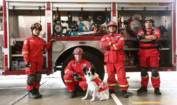Supervisando a los 41 peruanos estaba el arquitecto Carlos Paredes, quien fue parte de la primera promoción del grupo USAR, y ahora es jefe de toda la unidad. Un arquitecto como él se especializa en construir viviendas, pero cuando se viste de rojo debe rescatar a las personas que quedaron atrapadas en ellas. Antes de que Bono ingresara a una edificación derrumbada, Paredes analizaba la seguridad de la construcción, evaluando si podría venirse abajo. “Al perro lo queremos como a un efectivo nuestro”, dice el comandante, quien con más de veintiocho años como bombero de la compañía Lima 4 de Lince, ha visto todo tipo de tragedias. Sin embargo, estas aún pueden sorprender hasta a los bomberos más cuarteados. Por ejemplo, en Ecuador, mientras rescataba cuerpos, no pudo evitar ver el rostro de su hija en el cuerpo de una niña de la misma edad que sacaron de un edificio caído.