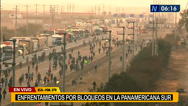 Salvador negoció con ellos durante media hora y aceptaron dejar libre al equipo periodístico con la condición de que abandonen Ica en ese instante. De pronto un manifestante que sostenía un celular se situó al frente del grupo y gritó: “Miren esta foto de la tele. Aquí han puesto: ‘Enfrentamientos por bloqueos en Panamericana Sur’”. Se trataba del titular del cintillo que acompañaba las imágenes de los disturbios en el kilómetro 278.