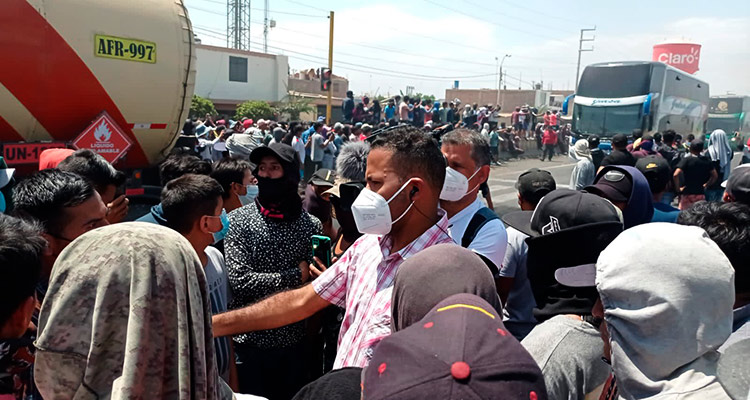 En la madrugada del 6 de abril la policía se dispuso a desbloquear la Panamericana Sur a la altura del kilómetro 278 para que las decenas de buses estacionados durante dos días debido al paro de transportistas avanzaran hacia su destino. Sin embargo, a las cinco de la mañana quinientas personas llegaron desde distintos puntos del Barrio chino de Ica para evitar que los policías liberen la vía.