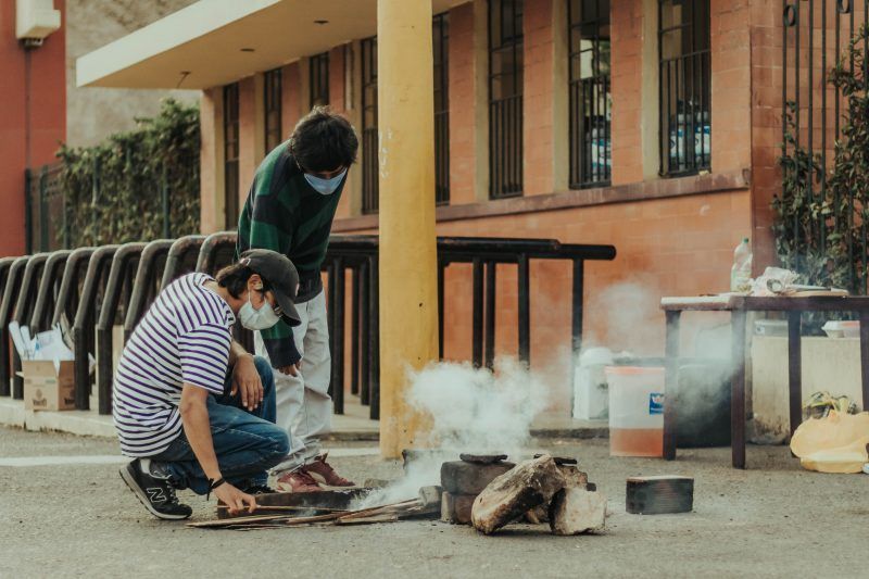 Para afrontar el hambre y la necesidad, desde la última semana de mayo los residentes externos organizan ollas comunes en una improvisada cocina de leña con las donaciones que les llegan. Jenny afirma que muchos de sus compañeros dependen de la olla común. “Algunos viven con cinco soles en el bolsillo. La mayoría se ha quedado sin trabajo y no tienen cómo subsistir”, sostuvo la estudiante universitaria.