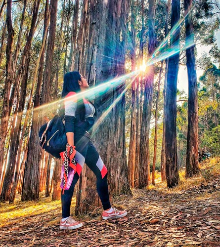 Yeni Llamocca visitando el Bosque de Quenqo en su primera salida al finalizar la cuarentena. Foto: Facebook Saqra Warmicha.