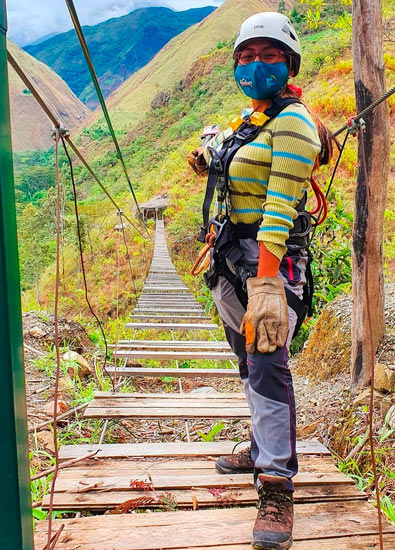 Yeni Llamocca antes de cruzar el puente tibetano ubicado en el distrito de Santa Teresa, Cusco. Foto: Facebook Saqra Warmicha
