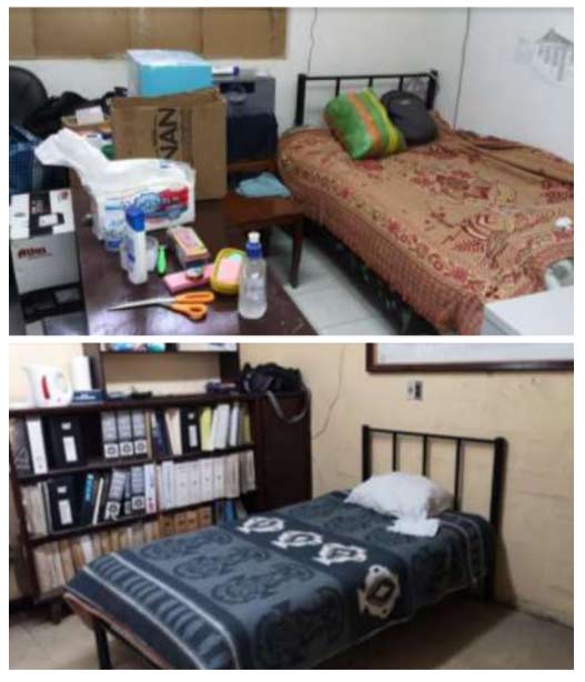 Espacios habilitados dentro de las oficinas de la empresa para que los trabajadores vivan en la mina. Foto: Archivo personal.
