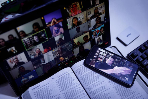 Durante el confinamiento, la iglesia transmitía la prédica de la semana por Zoom. Foto: Agua Viva.