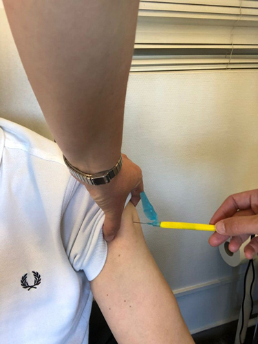Tras firmar el consentimiento de participación, se le practicó una serie de exámenes médicos: descarte de VIH, hisopado rectal y prueba de orina. “Duró cuatro horas y cada participante recibió una compensación económica de 30 dólares y en caso te acepten en el estudio clínico, como a mí, te llaman para una segunda visita en la que te quitan 14 tubos de sangre y te la inoculan con la vacuna”, señala.